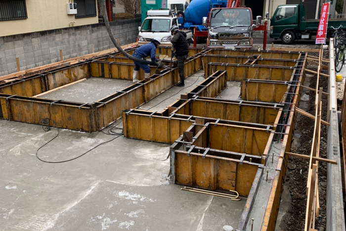 弊社では掘削から鉄筋の組み上げ、コンクリートの打設まで基礎工事にともなう一連の業務をトータルで請け負っております。各工程ごとにエキスパートを配置し、安心・安全な住まいを住宅基礎から実現いたします。